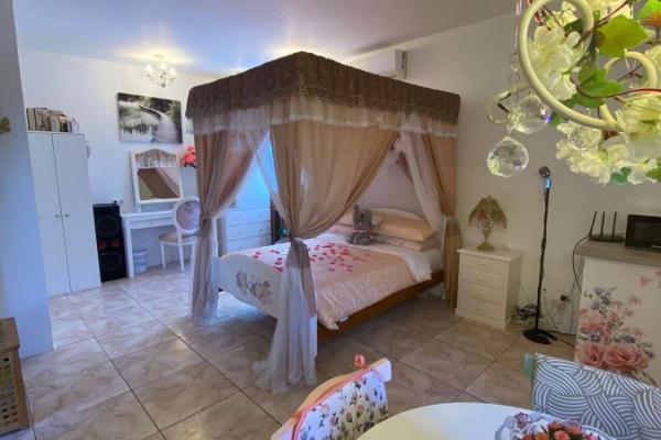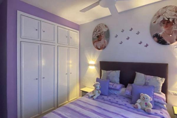 The master bedroom includes a double bed, air conditioning, and a generous dressing room. A second spacious bedroom offers fitted wardrobes and an ensuite with a contemporary walk-in shower.