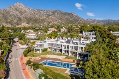 This stunning townhouse with sea views from the ground floor up is located in one of the most desirable locations in Marbella – Sierra Blanca.