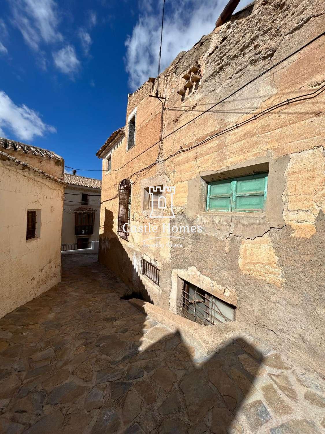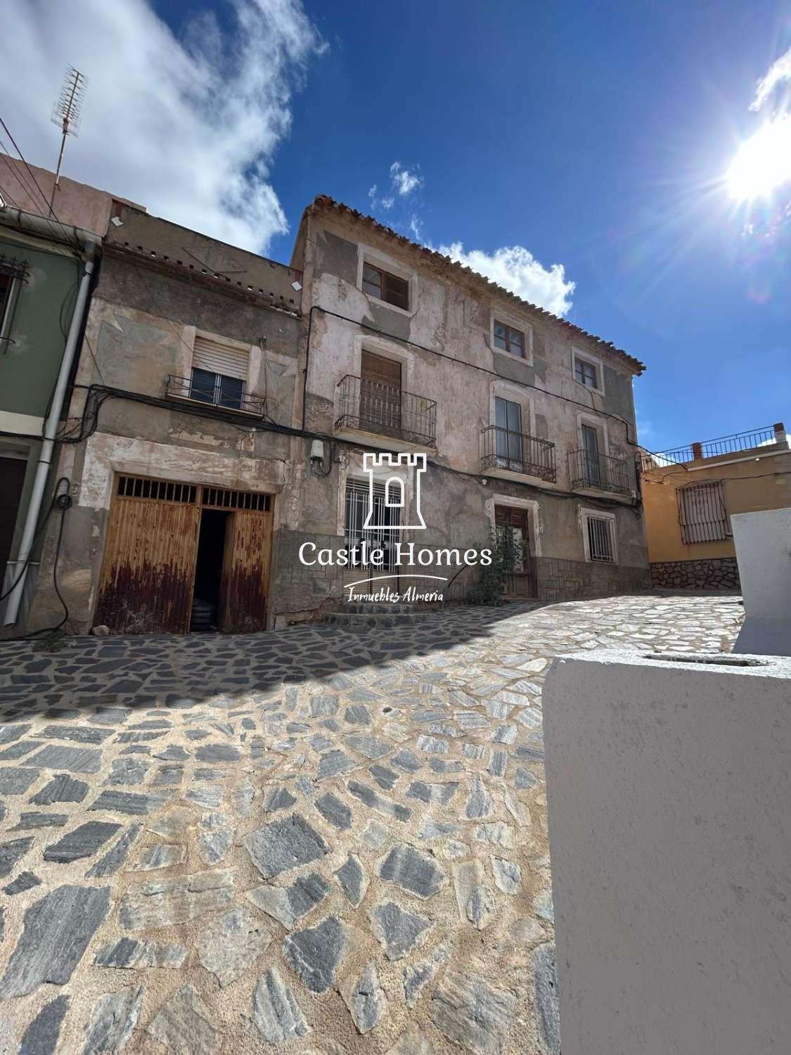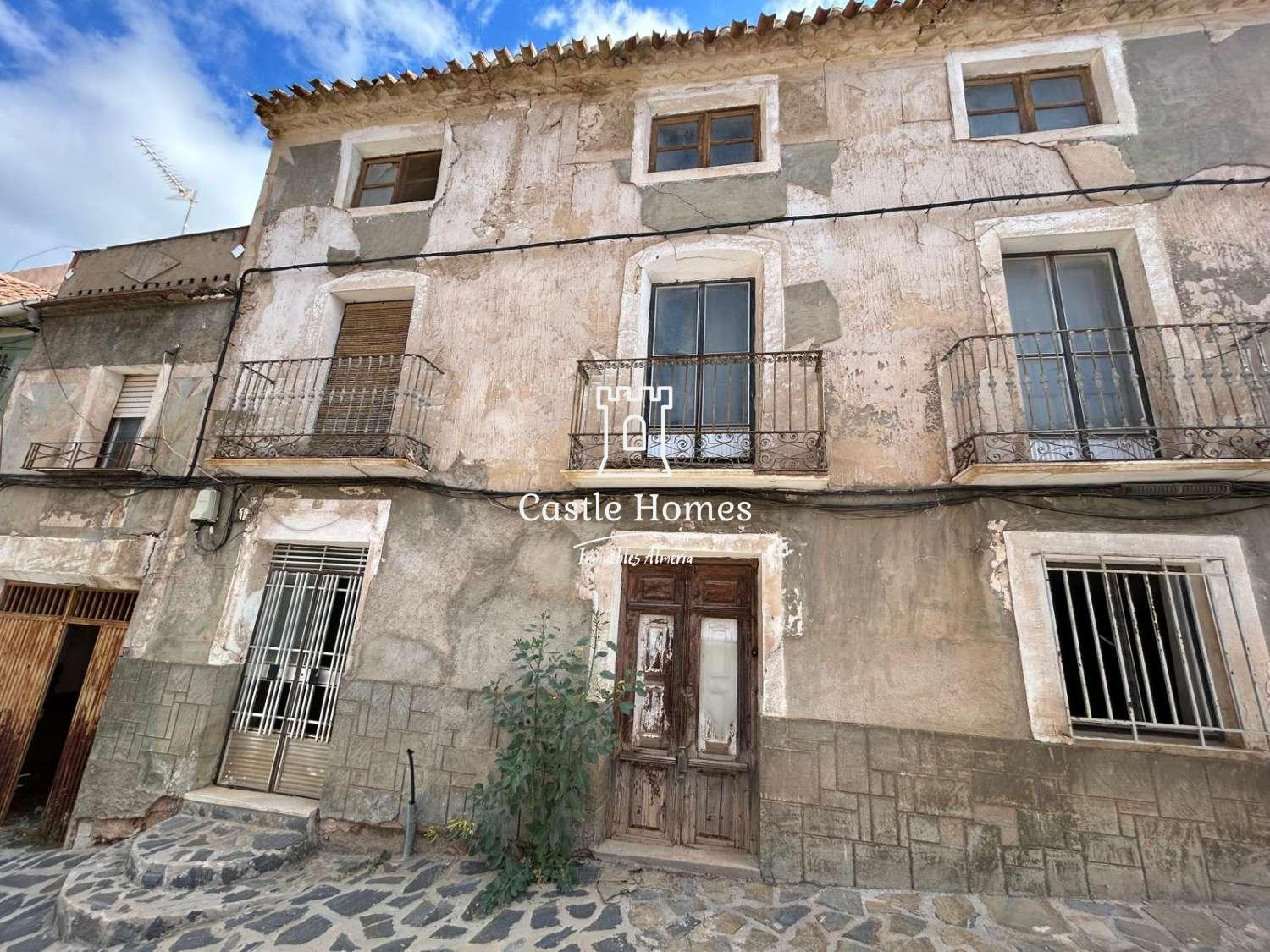 Large town house in the centre of Oria for sale. This impressive house is on the edge of the Church Square and ready for reform. The property is set over three floors, has a garage (with pulley system) and two terraces. It needs complete reform but could be a wonderful house when complete. The structure seems sound and the roof, although old, is mainly in good order. One of the most imposing houses in the town, this is being marketed at €65,000.