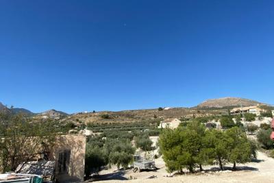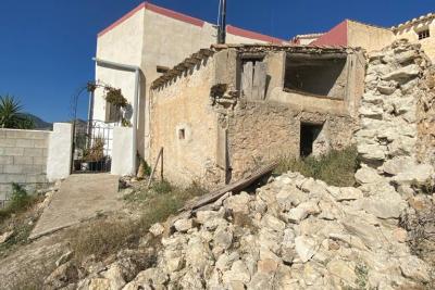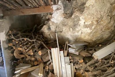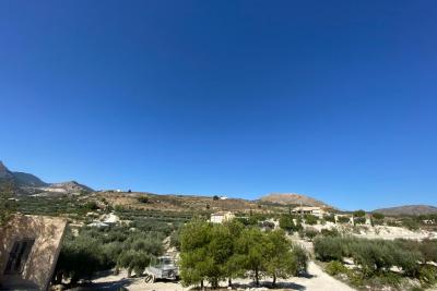 This country house is in an easily accessible location. Olive trees are planted on the land at the rear of the property with water rights, and there are plots of land at the front of the property with water connections. A road leads to the farmhouse. The entrance leads to the living room with large built-in wardrobes and a fireplace. Three steps lead to two double bedrooms. Stairs to the upper floor with two bedrooms and ample storage space. New electricity and water. Separate outbuilding with two large rooms and log storage along the path to the outbuilding. Another outbuilding with a storage room. Plenty of usable land surrounds the property.