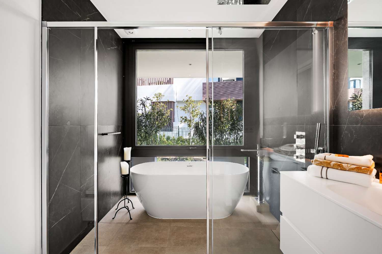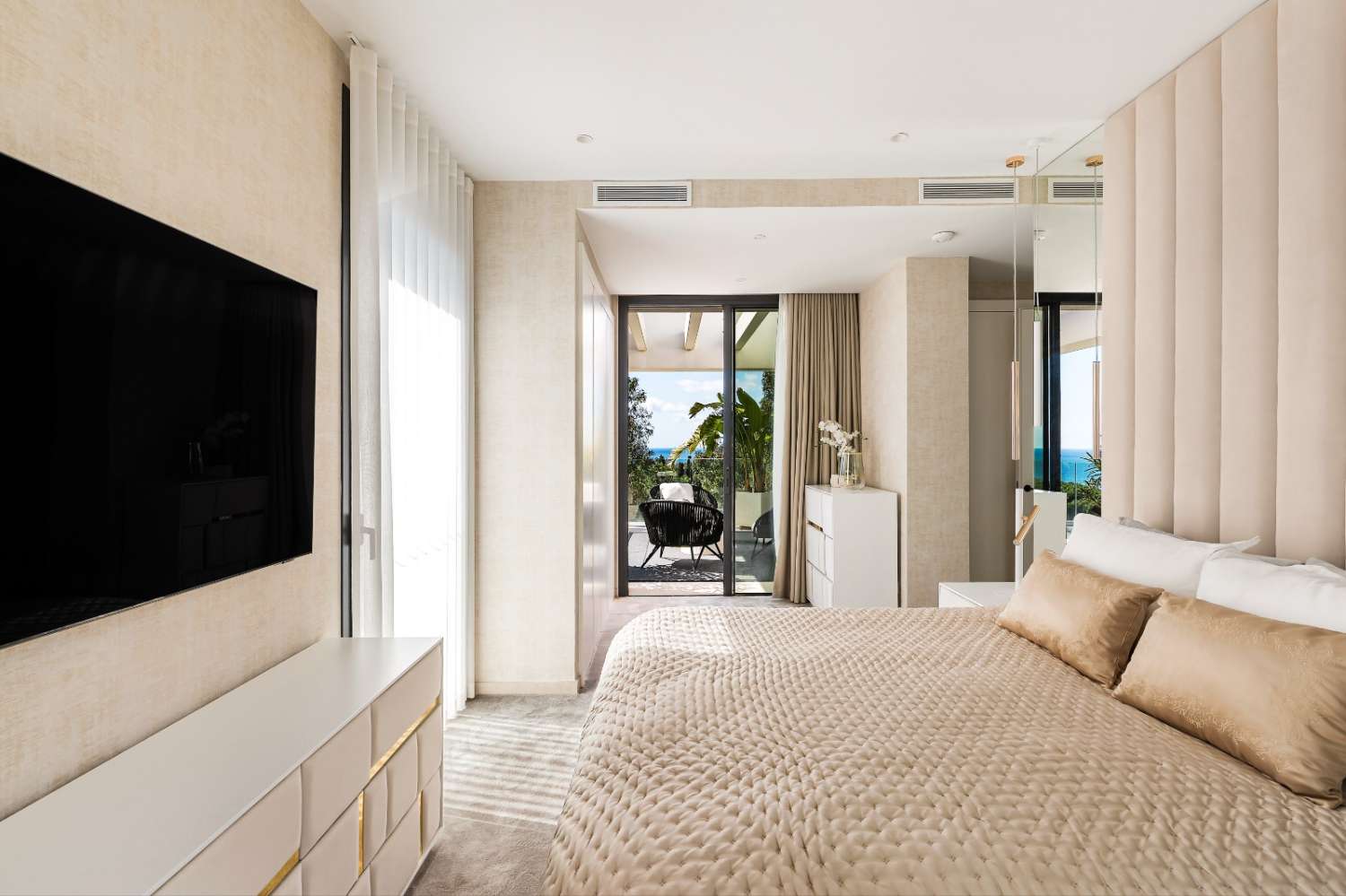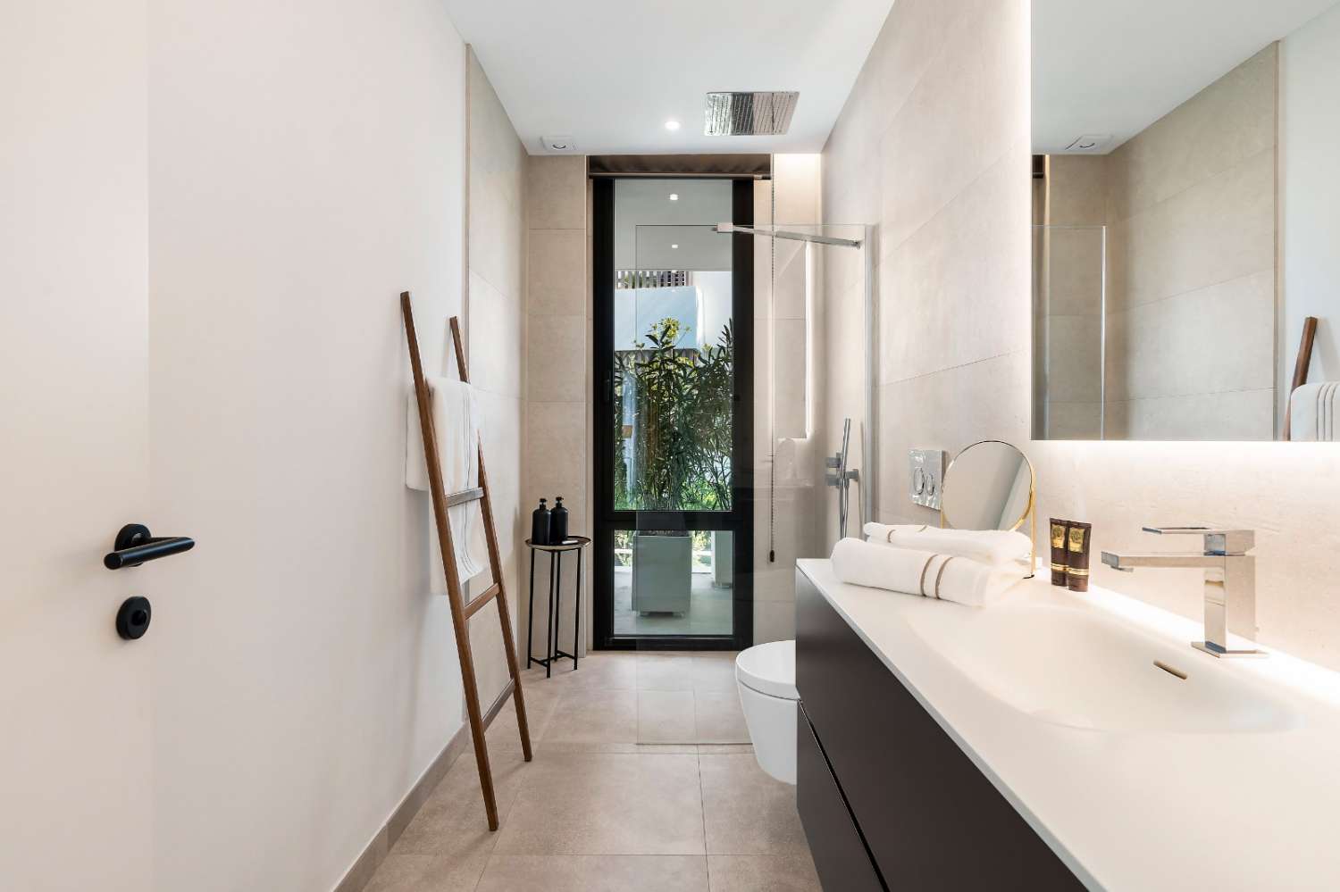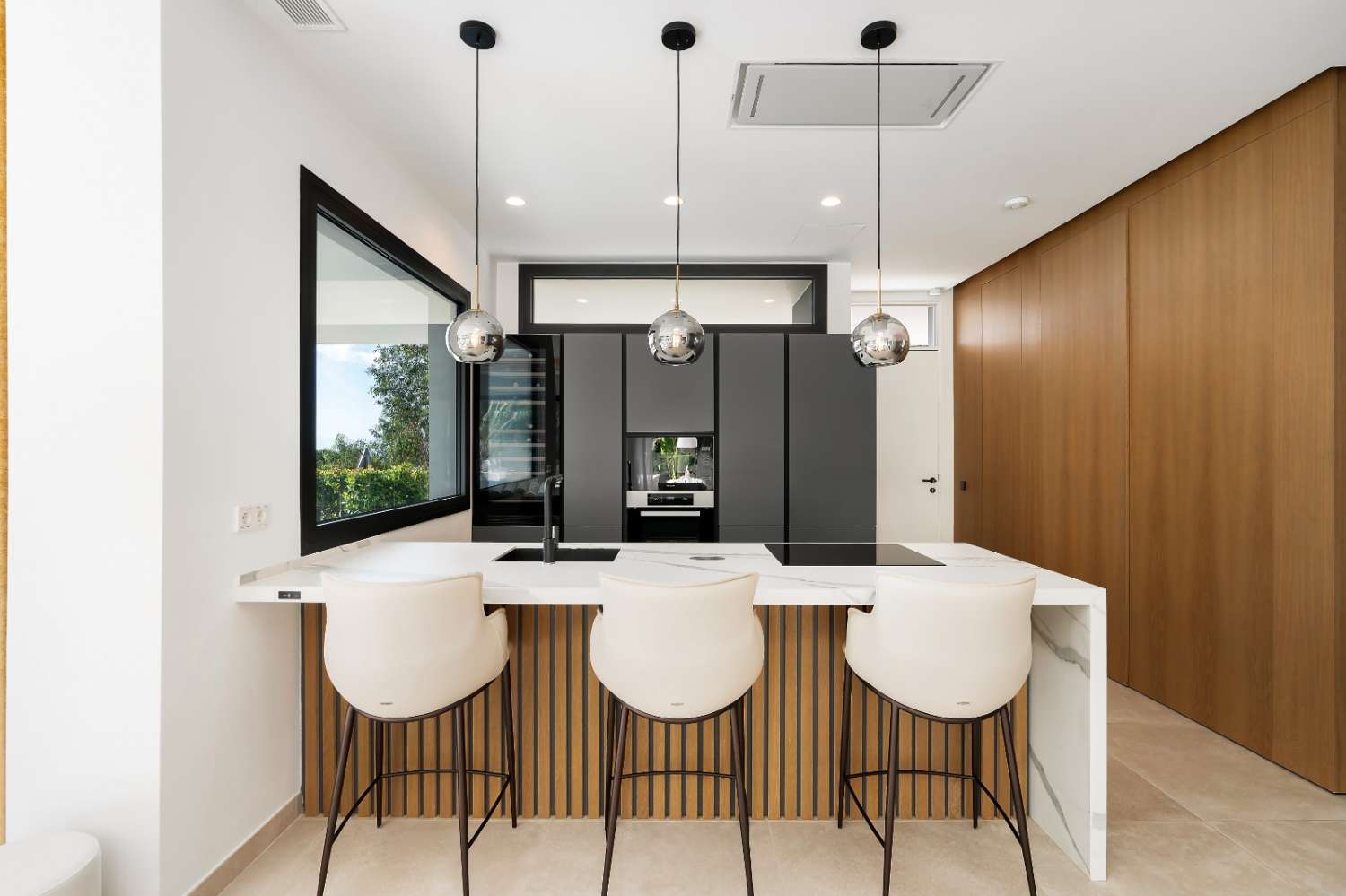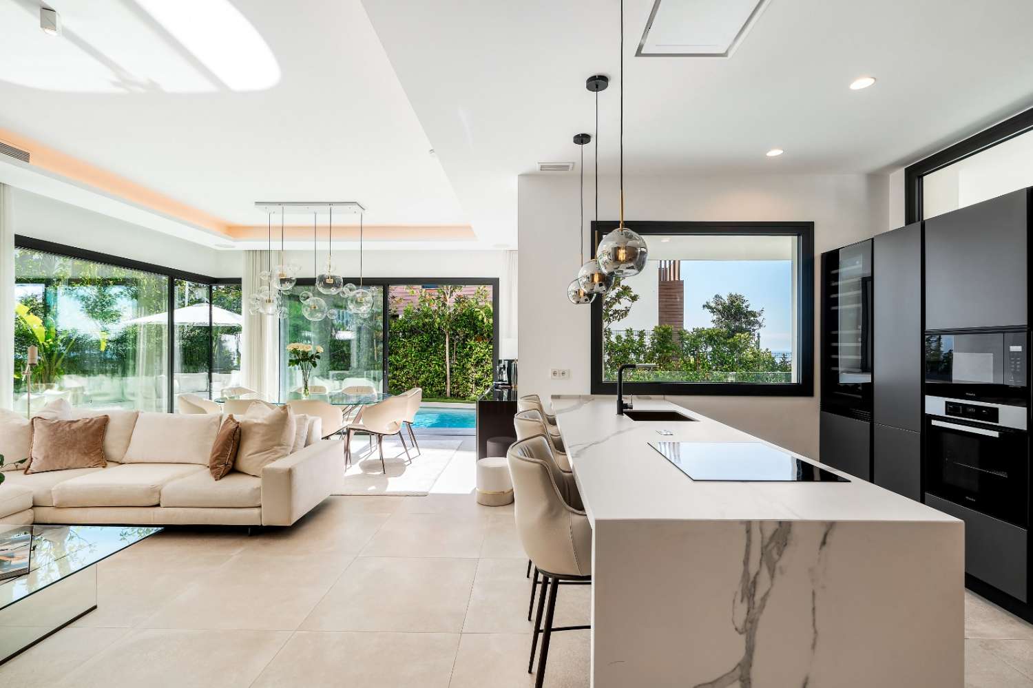 Only the best brands and materials have been used - Porcelanosa tile flooring indoor and out, Cortizo terrace doors and windows with triple glazing, Porcelanosa
