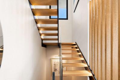 There are three bedrooms upstairs and one down. Each bedroom has its own terrace with fantastic sea views. An internal lift connects each level of the property.