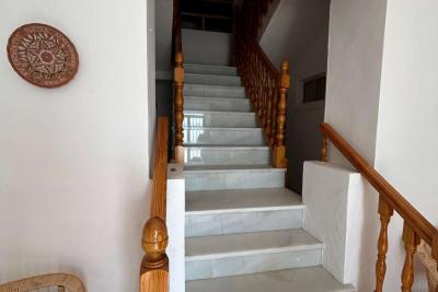 Subiendo el resto de las escaleras, a la izquierda tiene un dormitorio doble grande y a la derecha pasa a un comedor. Desde allí se accede a una gran cocina con chimenea abierta. A través de la cocina hay otra escalera que sube a otra gran sala. O directamente a otra gran sala con acceso a la zona exterior.