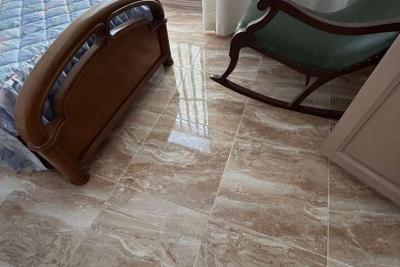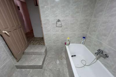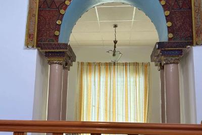 A mitad de las escaleras de mármol, tiene escalones a cada lado que bajan a otro dormitorio a un lado y un baño con bañera completa al otro lado. También hay escalones que conducen a una habitación muy grande con vista a la magnífica iglesia.
