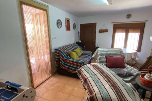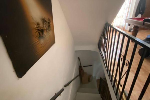 De vuelta a la planta baja, unas escaleras conducen a otra planta donde se encuentra una gran sala con chimenea y trastero bajo la planta baja. Una puerta da a la calle, lo que lo convierte en un apartamento independiente ideal.