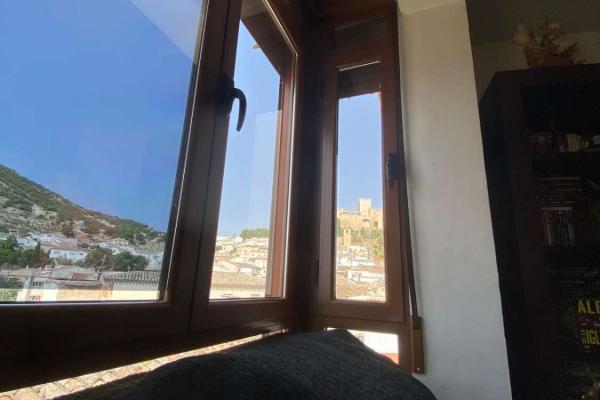 La planta baja cuenta con dos amplios salones. Uno de ellos ofrece unas vistas espectaculares a las montañas y al castillo.