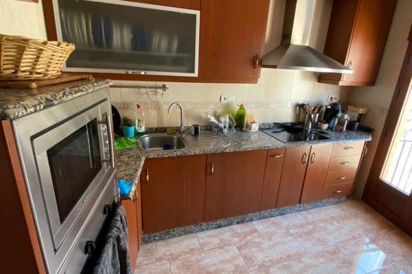 La cocina, como nueva, tiene una puerta francesa que da a un balcón exterior.