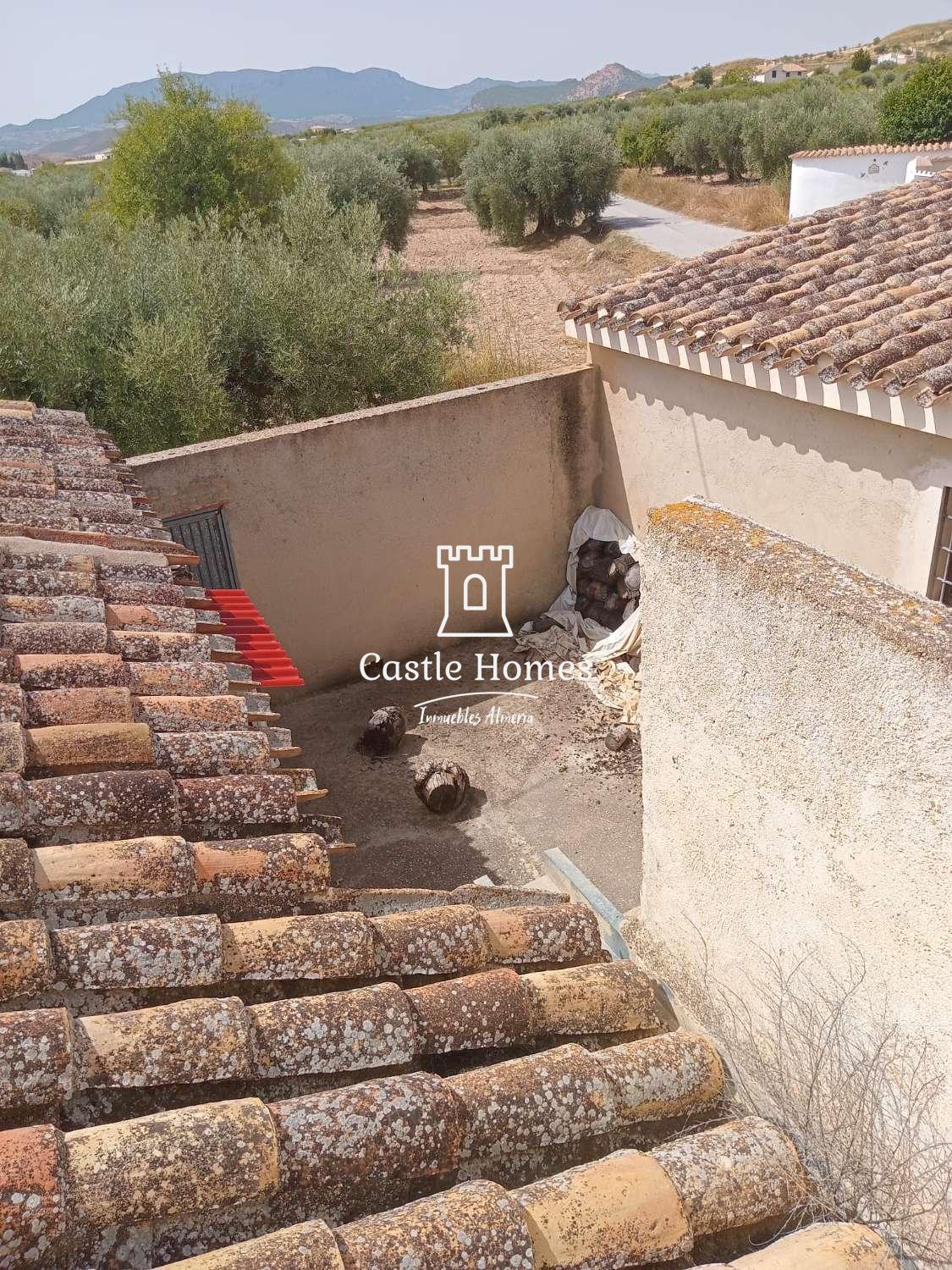 Aquí tenemos una propiedad única con dos casas, terreno y piscina a las afueras de Vélez Blanco. También dispone de varios garajes/talleres.