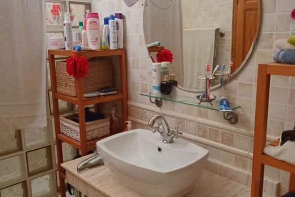 Subiendo las escaleras a la primera planta, hay otro dormitorio o sala de estar, otro baño y otro dormitorio doble.