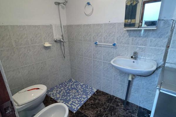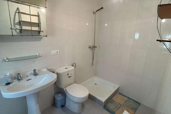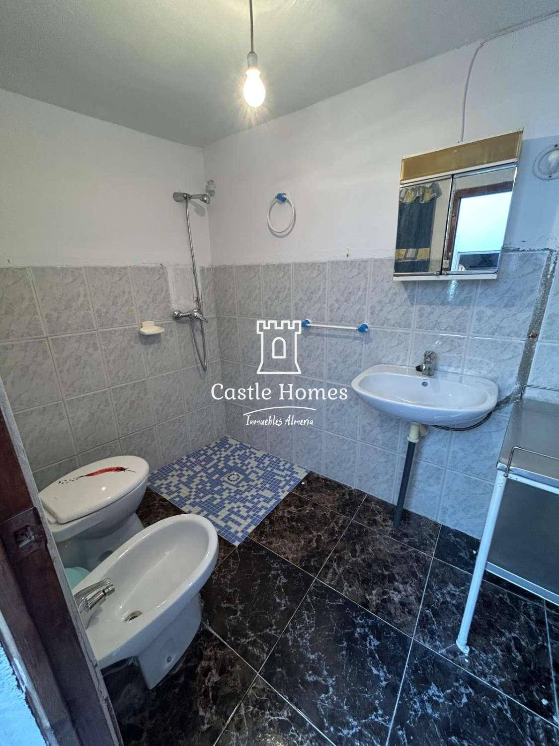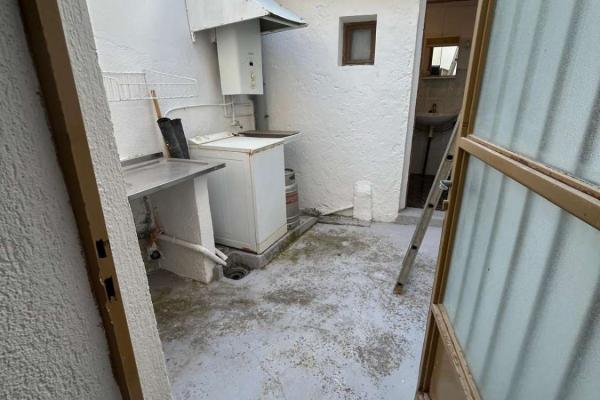 De vuelta a la cocina, una puerta da a un pequeño espacio exterior y a un baño con ducha al fondo del patio.