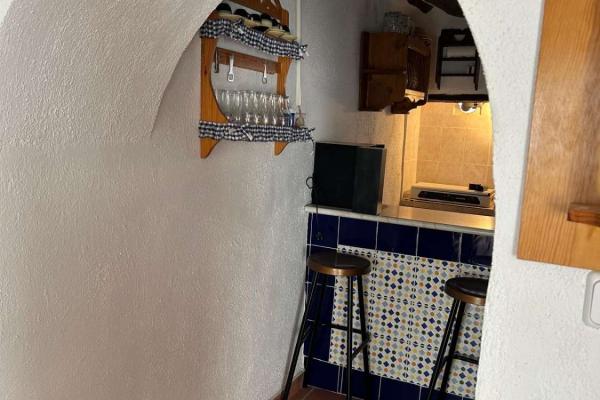 Unos arcos conducen a la cocina-comedor. La cocina es pequeña pero espaciosa, decorada al estilo tradicional español.